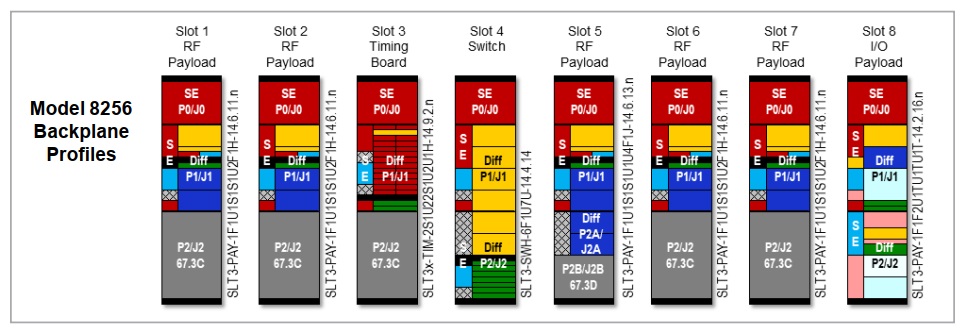 - Model 8256は、RFおよび光インターフェイスへの便利なアクセス用に設計されています。各RFペイロードスロットには、シャーシの背面パネルにある20個の同軸ブレークアウトコネクタをオプションで選択でき、VITA 67.3Cバックプレーンコネクタに直接接続できます。さらに、各RFペイロードスロットには、VITA 67.3Cデュアル光インターフェイスへのアクセスを提供するために、2つの背面パネルMPOアダプタをオプションで選択できます。