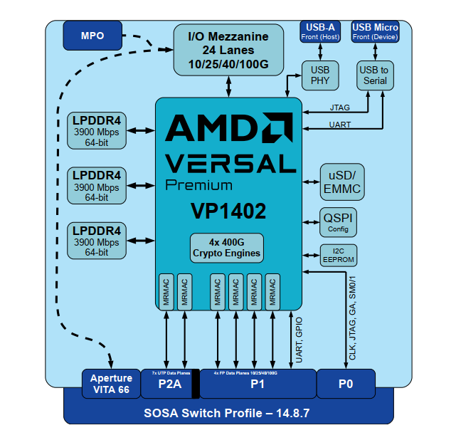 このFPGAプロセッサカードは、Open VPX 14.8.7-nスイッチプロファイルに準拠しており、I/Oメザニンカードと組み合わせることで、さまざまなリアアパーチャとフロントI/Oオプションをサポートできます。