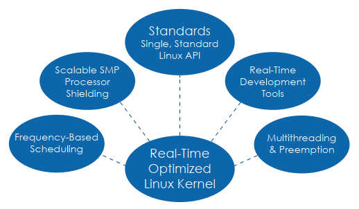 RedHawkは、タイムクリティカルおよびハードリアルタイム環境が必要とするパフォーマンスを保証します。さらに、モデリング、シミュレーション、データ収集、工業制御、医療用画像処理システム などの幅広いアプリケーションに最適なLinuxソリューションで、殆どのプラットフォーム上において ユーザーレベル・アプリケーションが外部イベントに対して5マイクロ秒以下で応答することを保証します。RedHawkにはRHELのすべての機能が含まれますので、ユーザレベルコマンドやユーティリティ、システム管理は Red Hat と完全互換となります。重要なオープンソース・パッチとConcurrent社が開発・強化してリリースした kernel.orgにより優れたリアルタイムパフォーマンスを実現します。RedHawkのユーザーライブラリは、他のLinuxが提供していない機能を加えて提供しています。また、標準的なLinuxのユーザーレベルAPIと完全互換であるため、他のLinuxディストリビューションで書かれたアプリケーションでも修正することなくRedHawk上で動作させることが可能です。